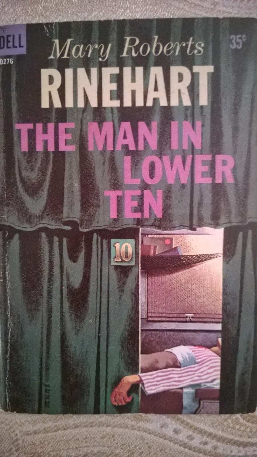 Rinehart was born in (what is now) Pittsburgh, trained to be a nurse, and married a doctor, Stanley Rinehart. She began publishing stories in the downmarket magazines of the time in 1904, to help her family's finances after the stock market crash of 1903. Her first novel was the one covered here, The Man in Lower Ten, which was serialized in All-Story Magazine in 1906. (Her second novel, The Circular Staircase (1907) is often sloppily called her first, as it was the first to become a book.) The Man in Lower Ten was published in book form in 1909, and it was the fourth bestselling novel of that year according to Publishers' Weekly. It is considered the first novel clearly in the mystery genre to become a general fiction bestseller. My copy is a 1959 Dell paperback, complete with interior illustrations.